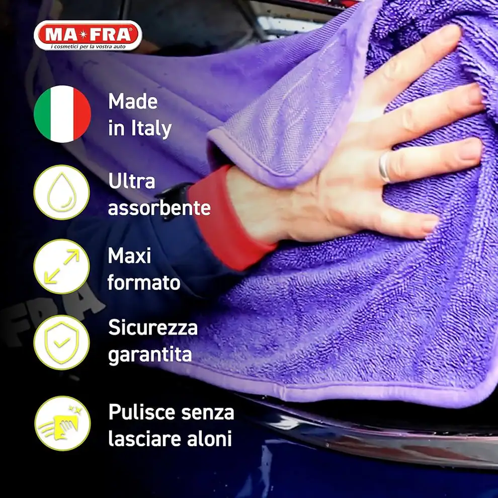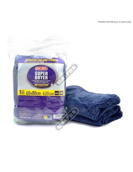 מגבת Super Dryer מבית Ma-Fra היא הפתרון האידיאלי לייבוש מהיר, בטוח ויעיל של גוף הרכב, מבלי להשאיר סימנים או שאריות מים. בזכות מיקרופייבר איכותי ועדין במיוחד, היא סופגת עד 4.6 פעמים ממשקלה, ומבטיחה ייבוש מלא בכמה מעברים בלבד.