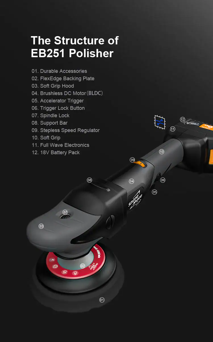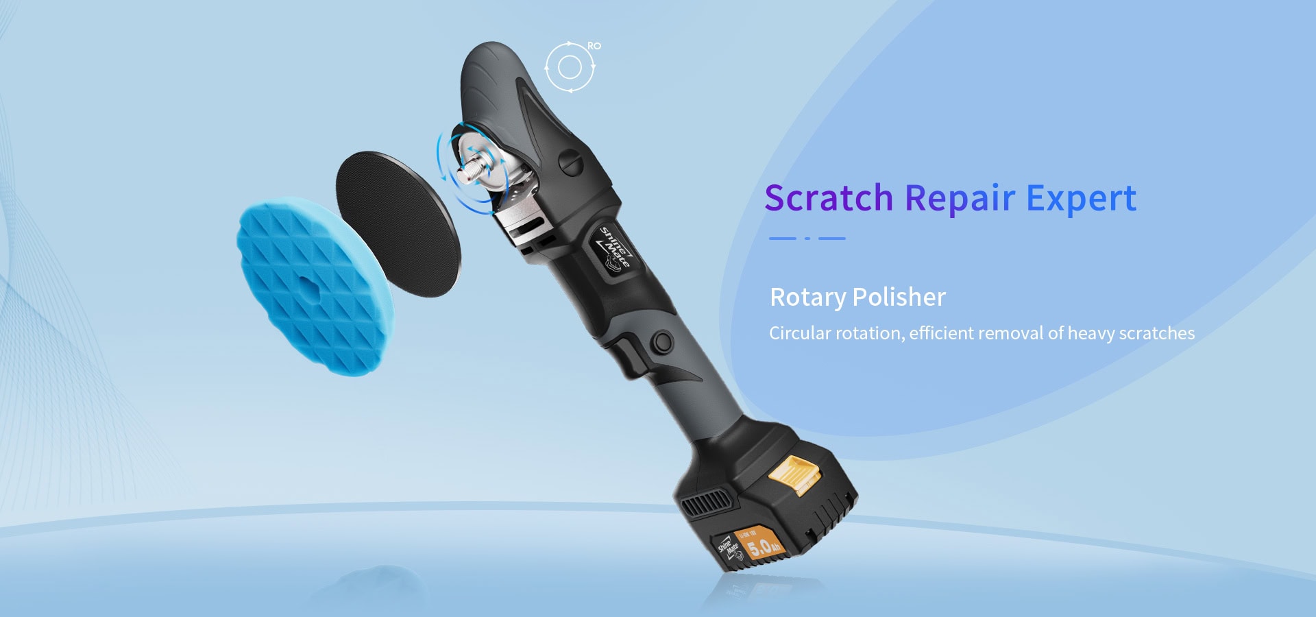 פולישר רוטורי BL נטען 5" מתאם סקוטש ל 6" 2 סוללות 18V 5.0Ah (ללא מטען BC182)
