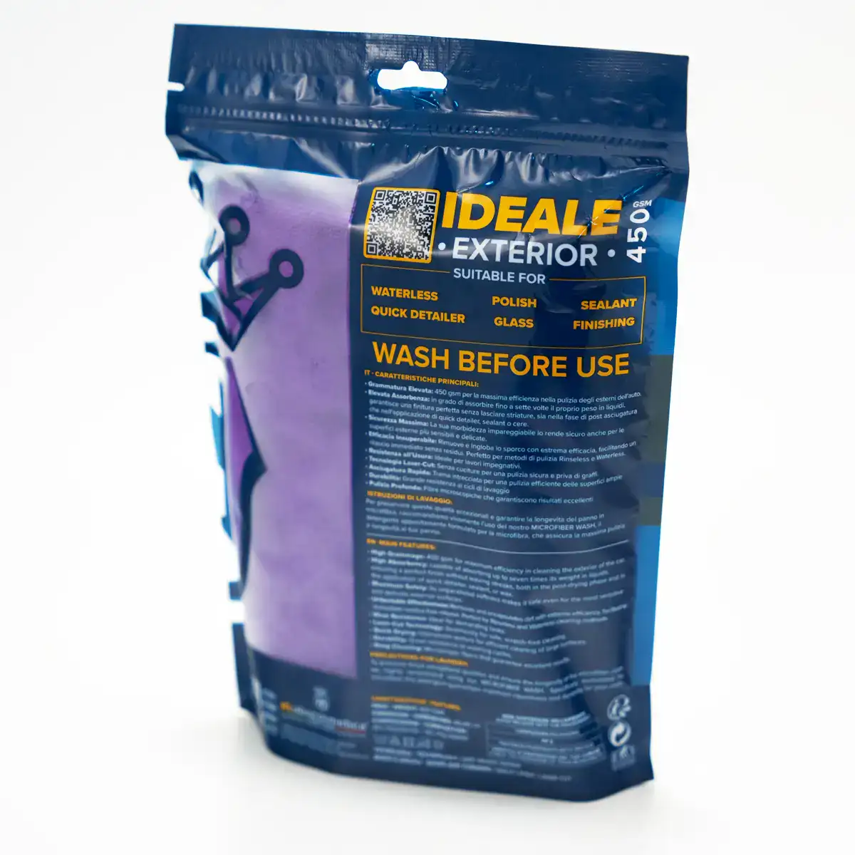 מטלית המיקרופייבר IDEALE לחלקו החיצוני של הרכב פותחה במיוחד לטיפול מקצועי בגוף הרכב, עם צפיפות של 450 גרם למ"ר (GSM) – מה שהופך אותה לכלי ניקוי אפקטיבי, רך ואמין במיוחד.